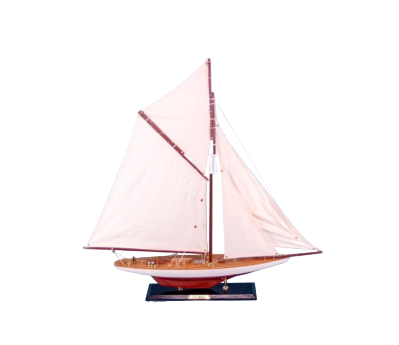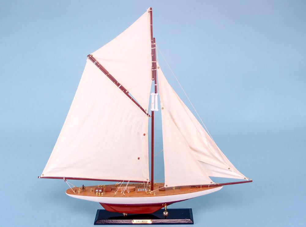 This polished wood replica of the Columbia Yacht measures 60cm by 60cm, crafted to capture the fine details of this historic vessel. The Columbia Yacht is renowned for winning the first America's Cup in 1870, marking a pivotal moment in yacht racing history. This high-quality model celebrates that legacy with expert craftsmanship, making it a distinguished piece for any maritime enthusiast or collector.