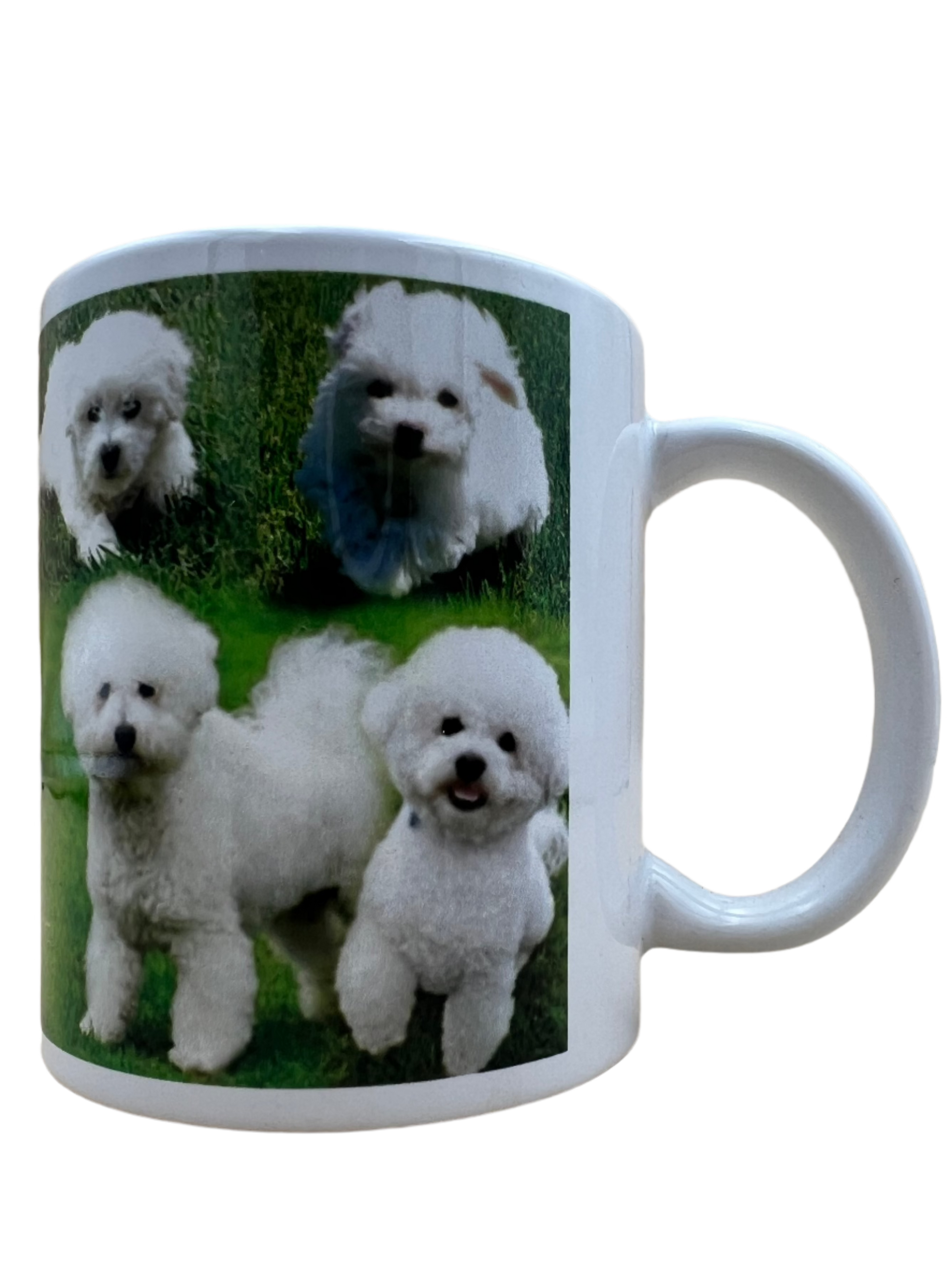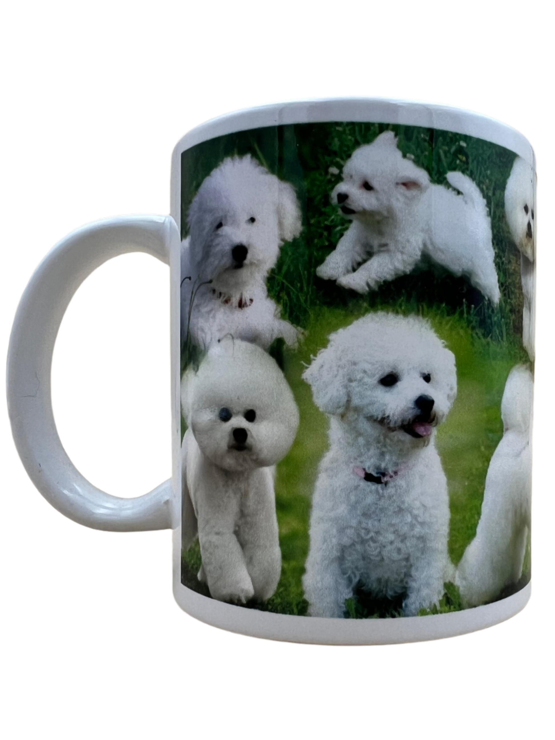 This ceramic dog mug features a durable wrap-around design showcasing the charming Bichon Frise. Perfect for dog lovers, this mug combines functionality with a touch of personality. Made with high-quality materials, it is both practical and aesthetically pleasing. Enjoy your favourite beverage while admiring this beloved breed.