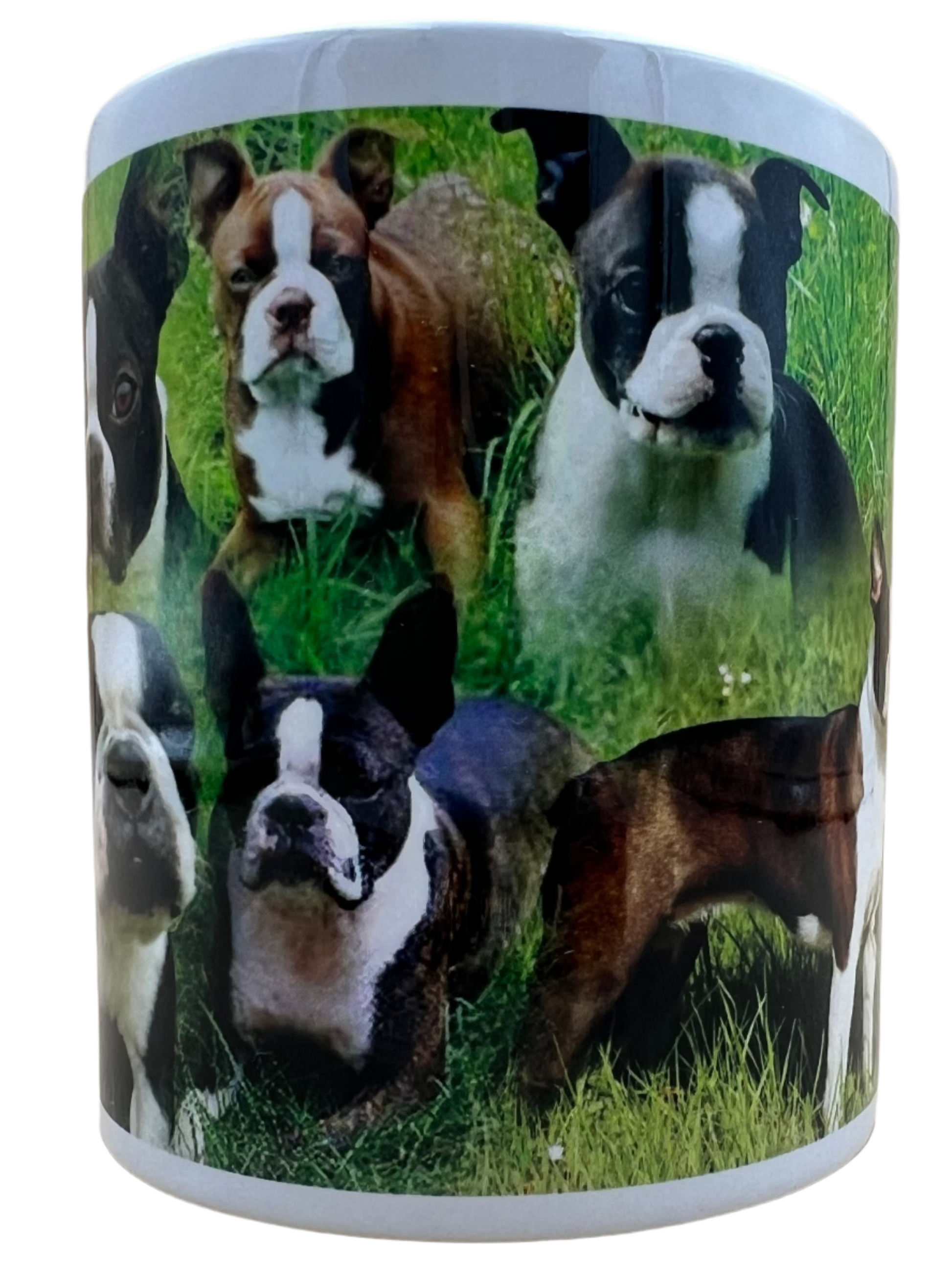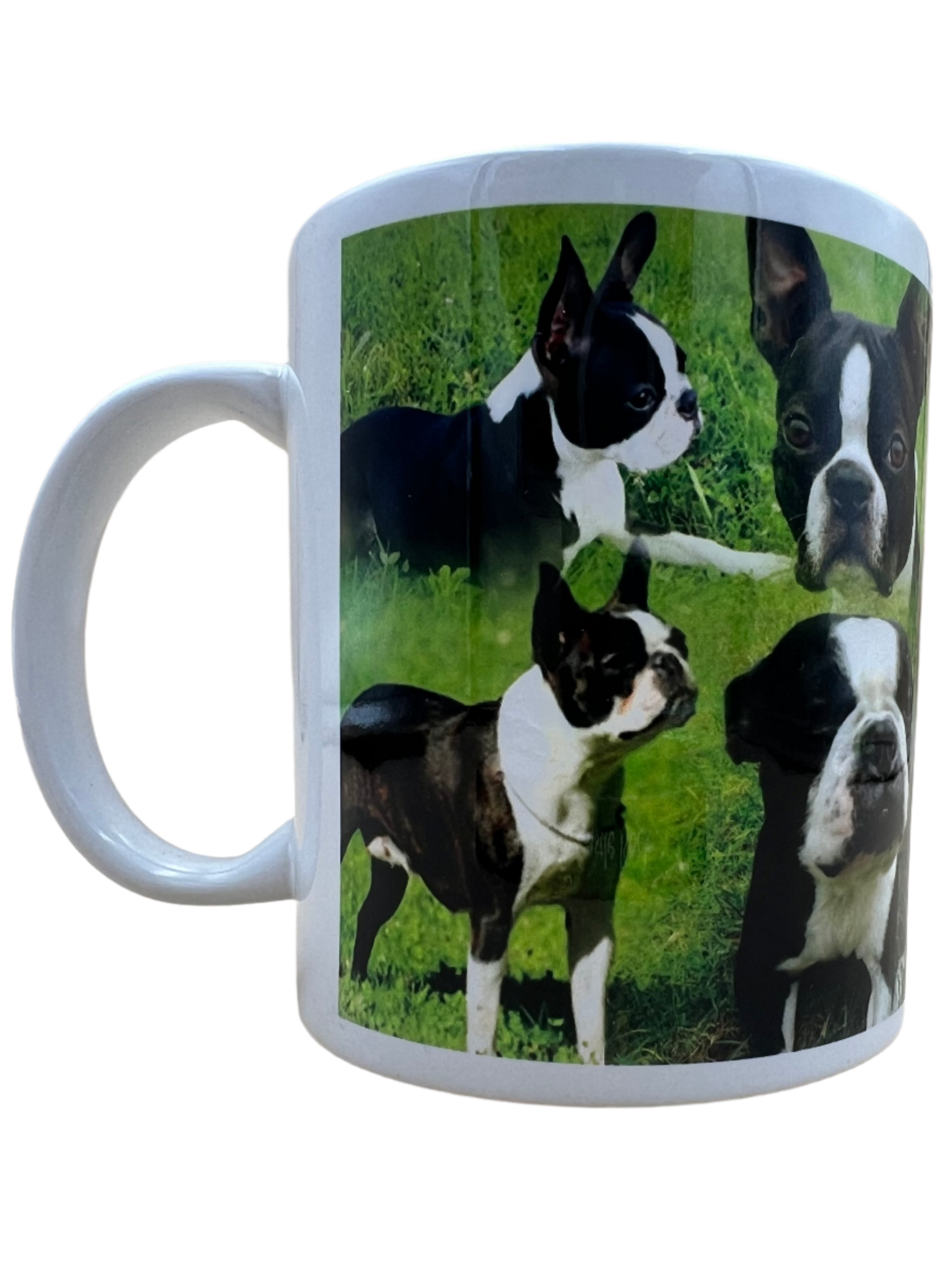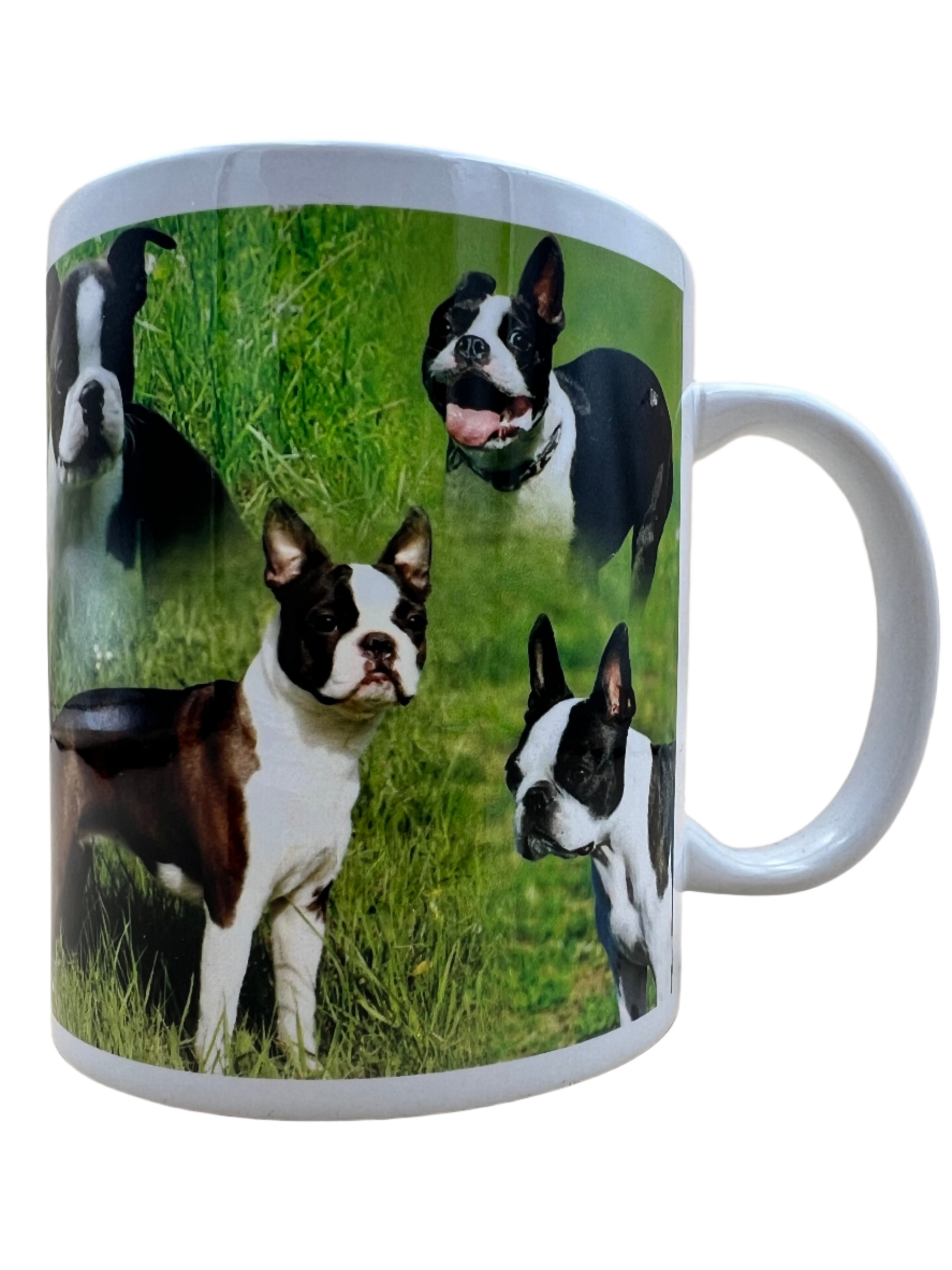 Introducing our Dog Mug featuring a wrap around design of the beloved Boston Terrier breed. Made with high-quality materials, this mug is perfect for any dog lover. Add a touch of cuteness to your morning routine and show off your love for Boston Terriers.