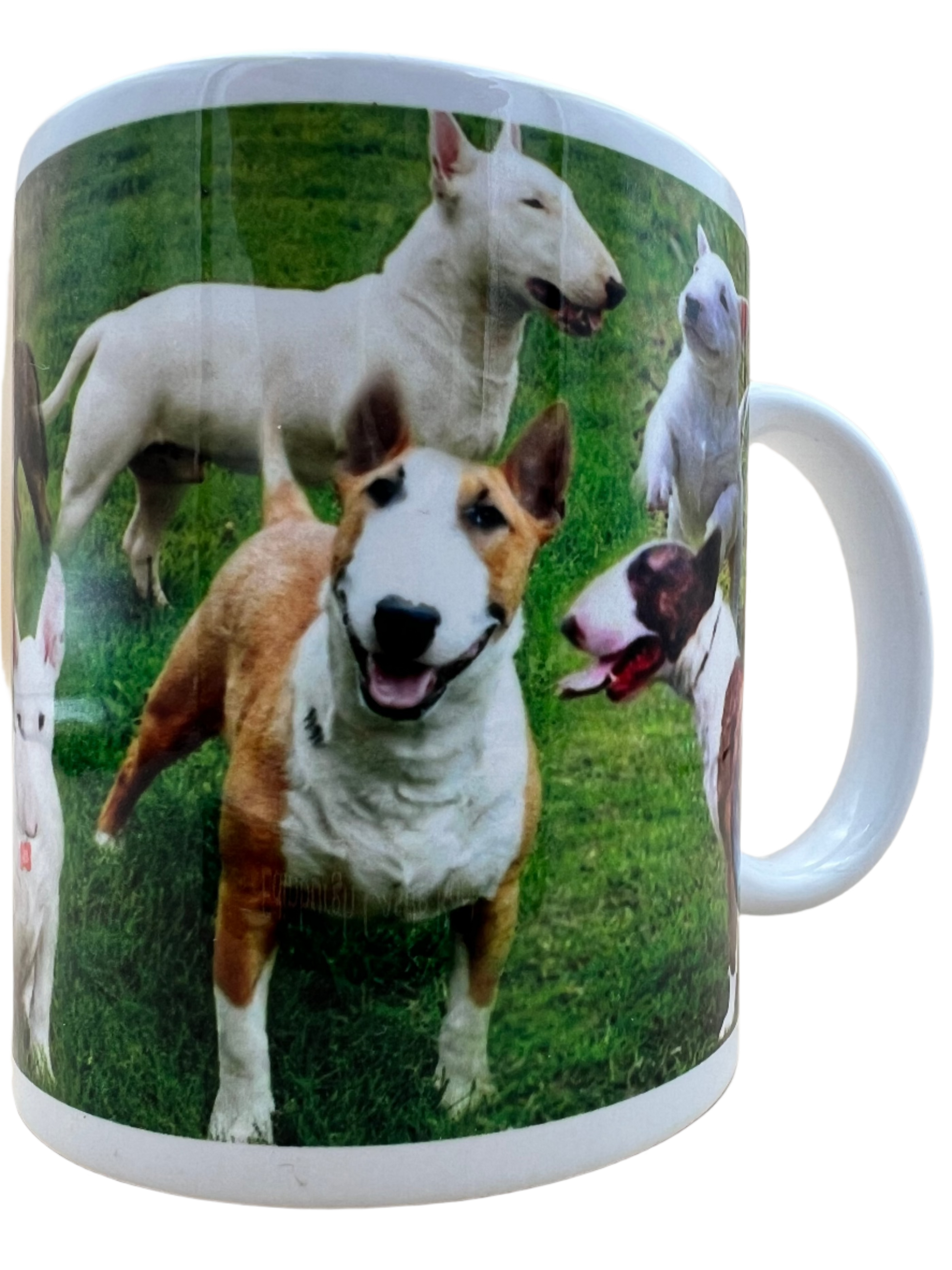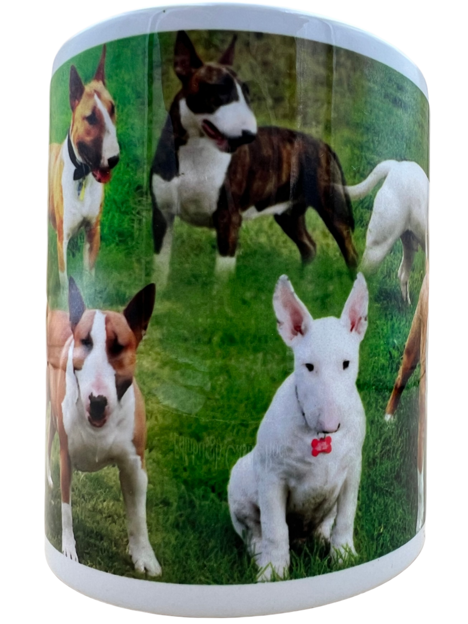 Embrace your love for Bull Terriers with our Dog Mug. This high-quality mug features a wrap around design of these lovable creatures, perfect for any dog lover. Made with durable materials, this mug will keep your drink hot and your heart full. Add this unique item to your collection today.