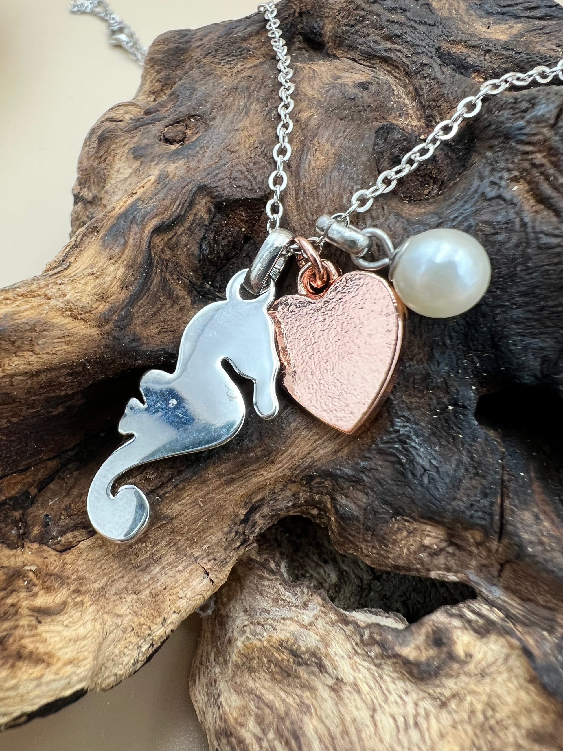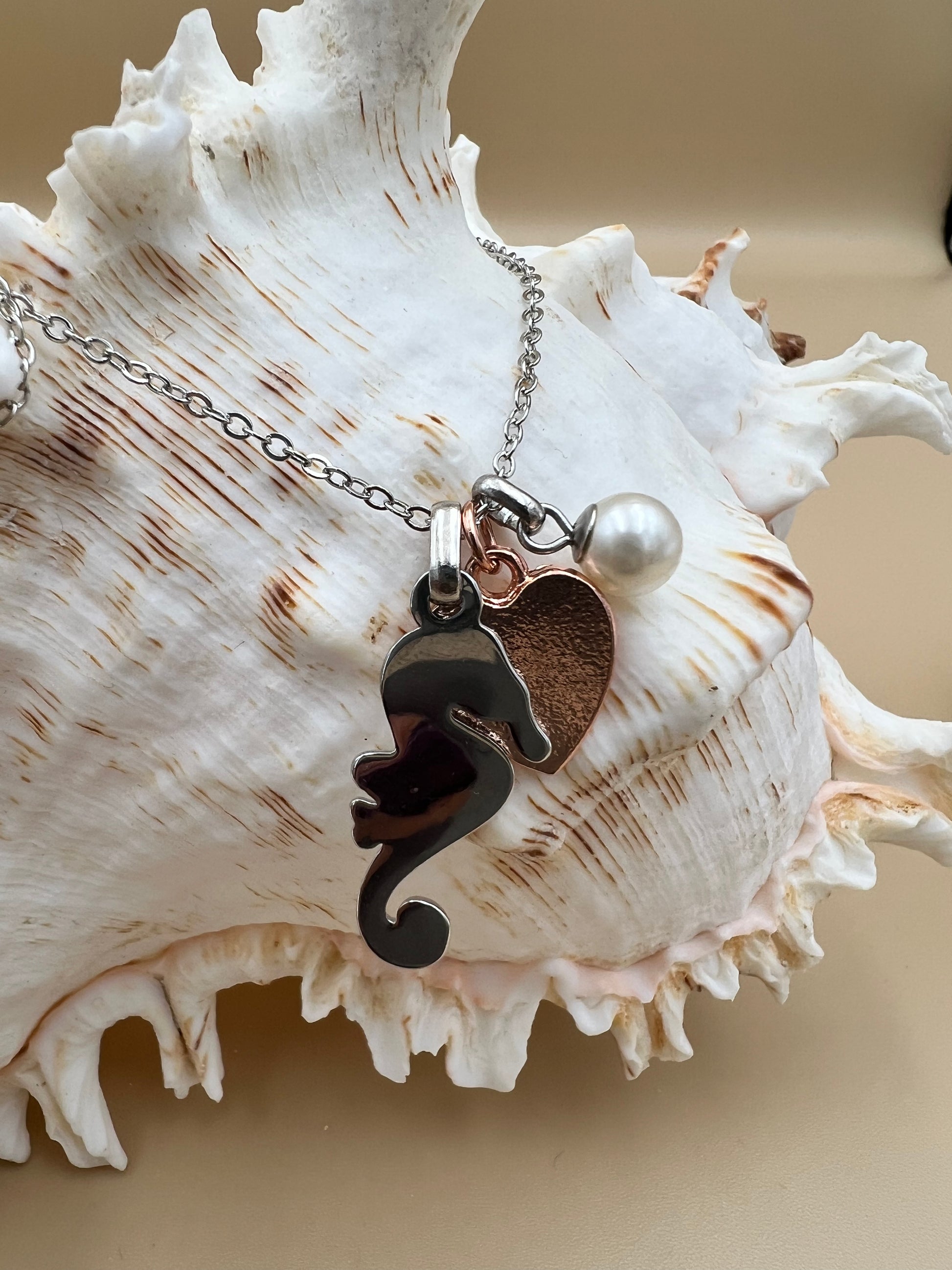 - Cluster necklace with seahorse, heart & faux pearl pendants