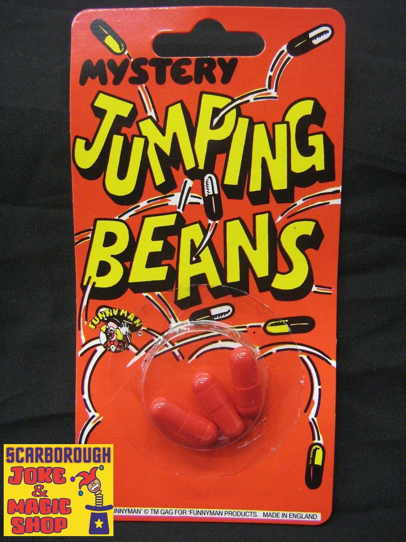 Place these little pill shaped beans in the palm of your hand- then by tilting your hand back and forth the beans will then skip and jump about in unpredictable ways, almost like they have a life of their own!