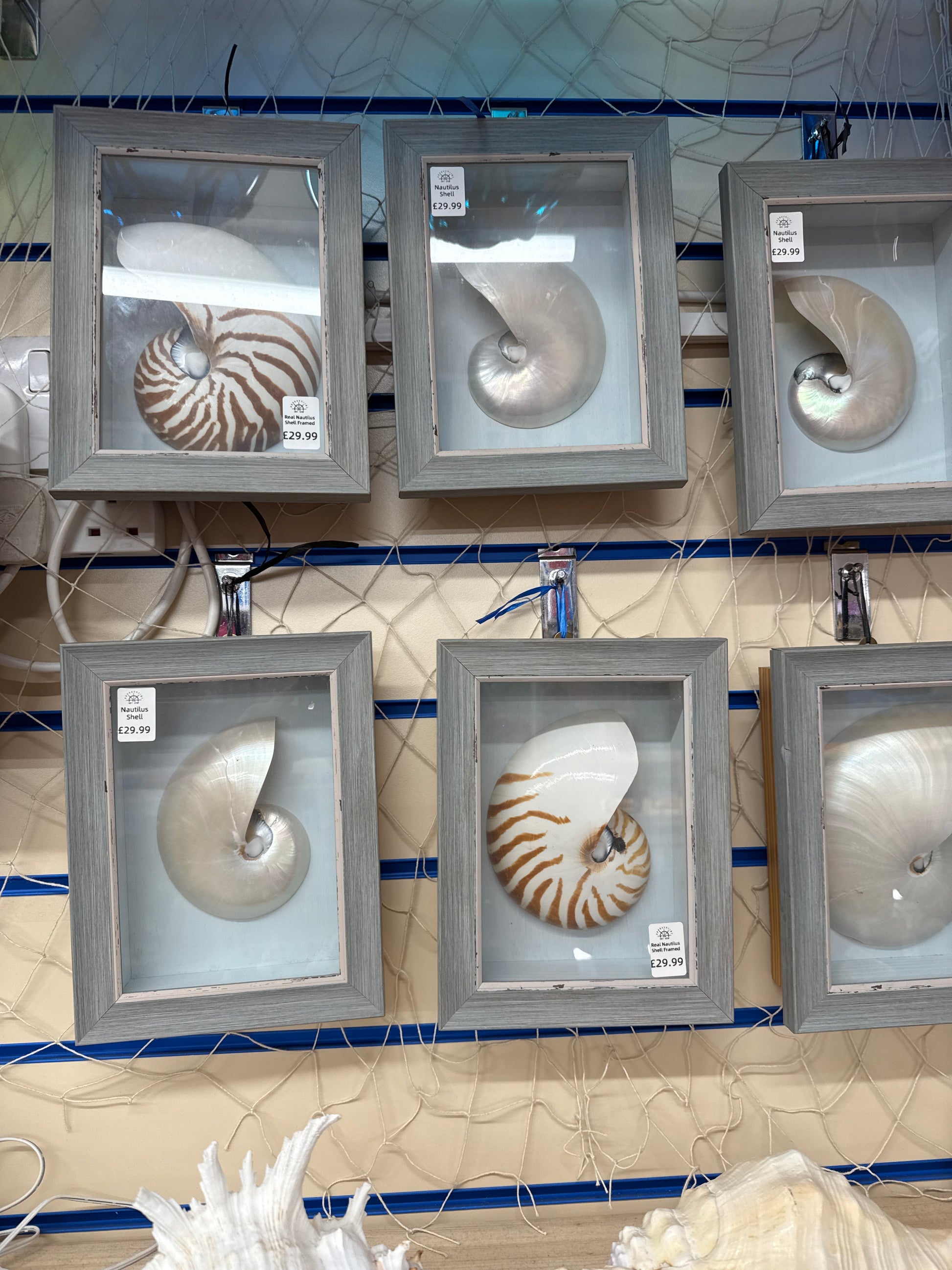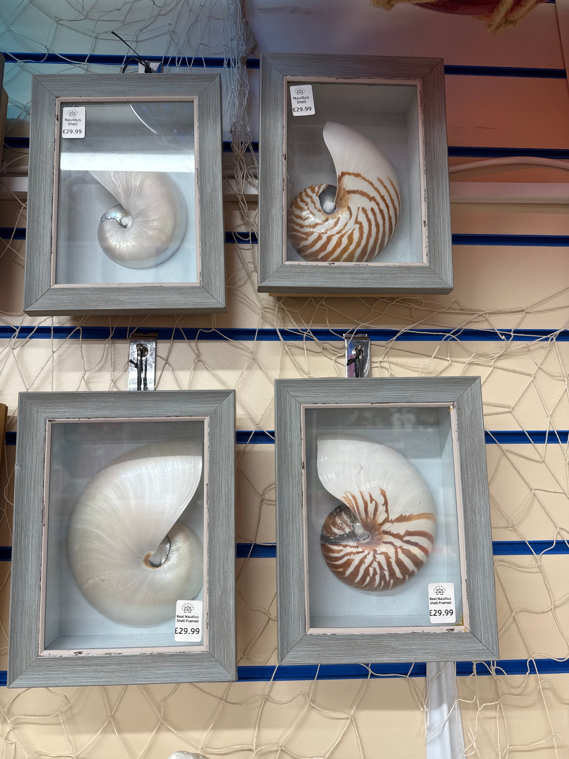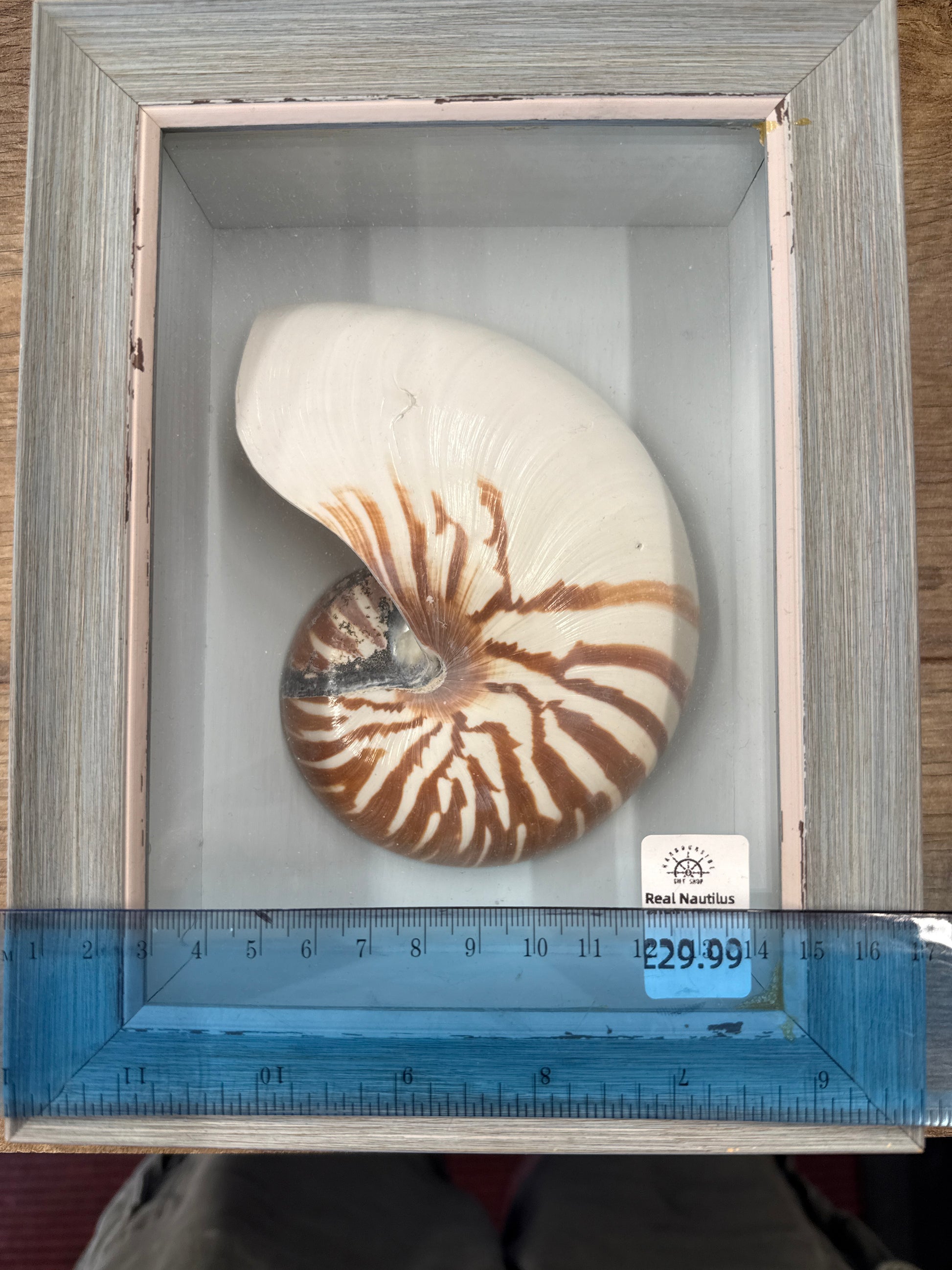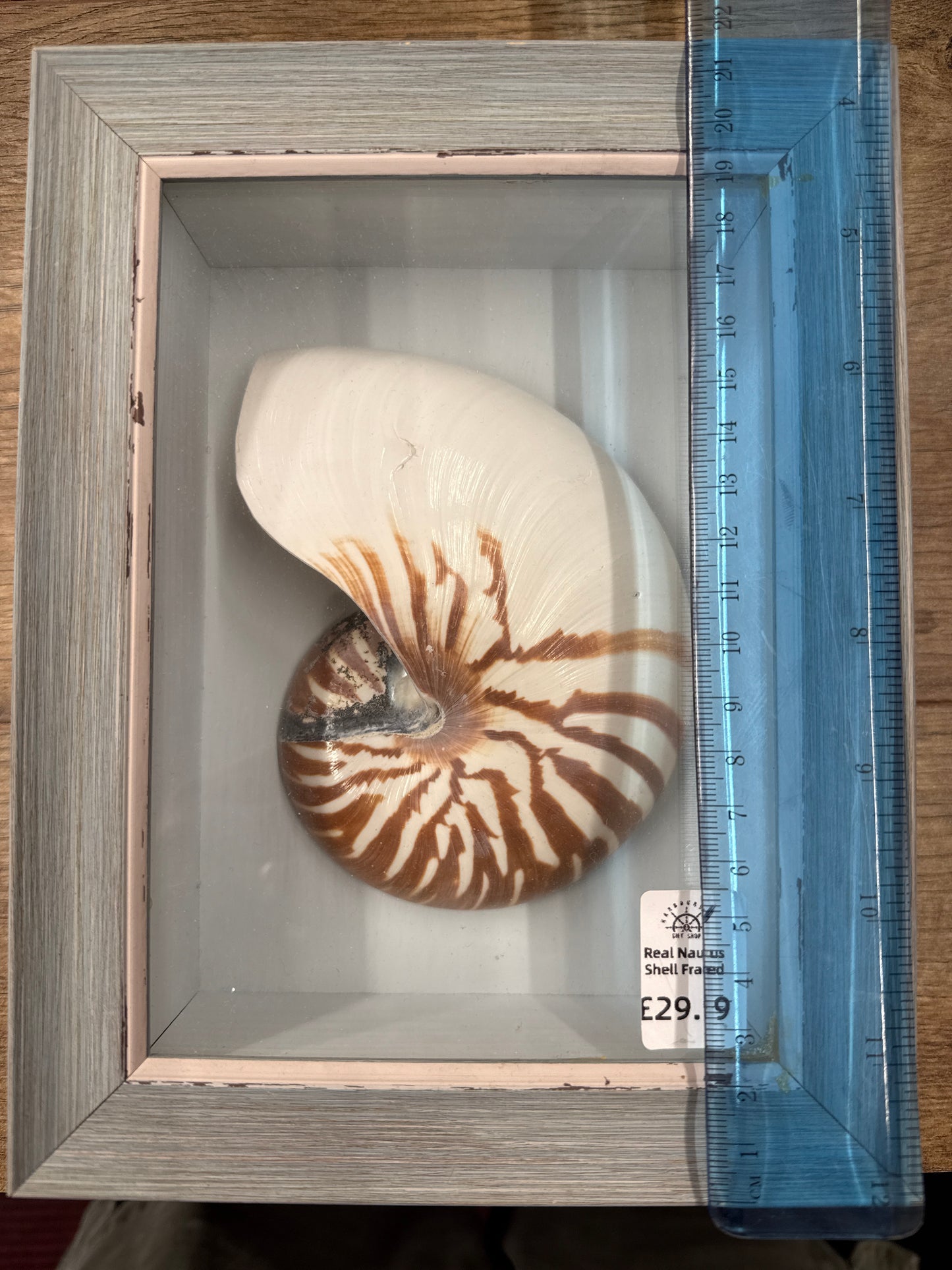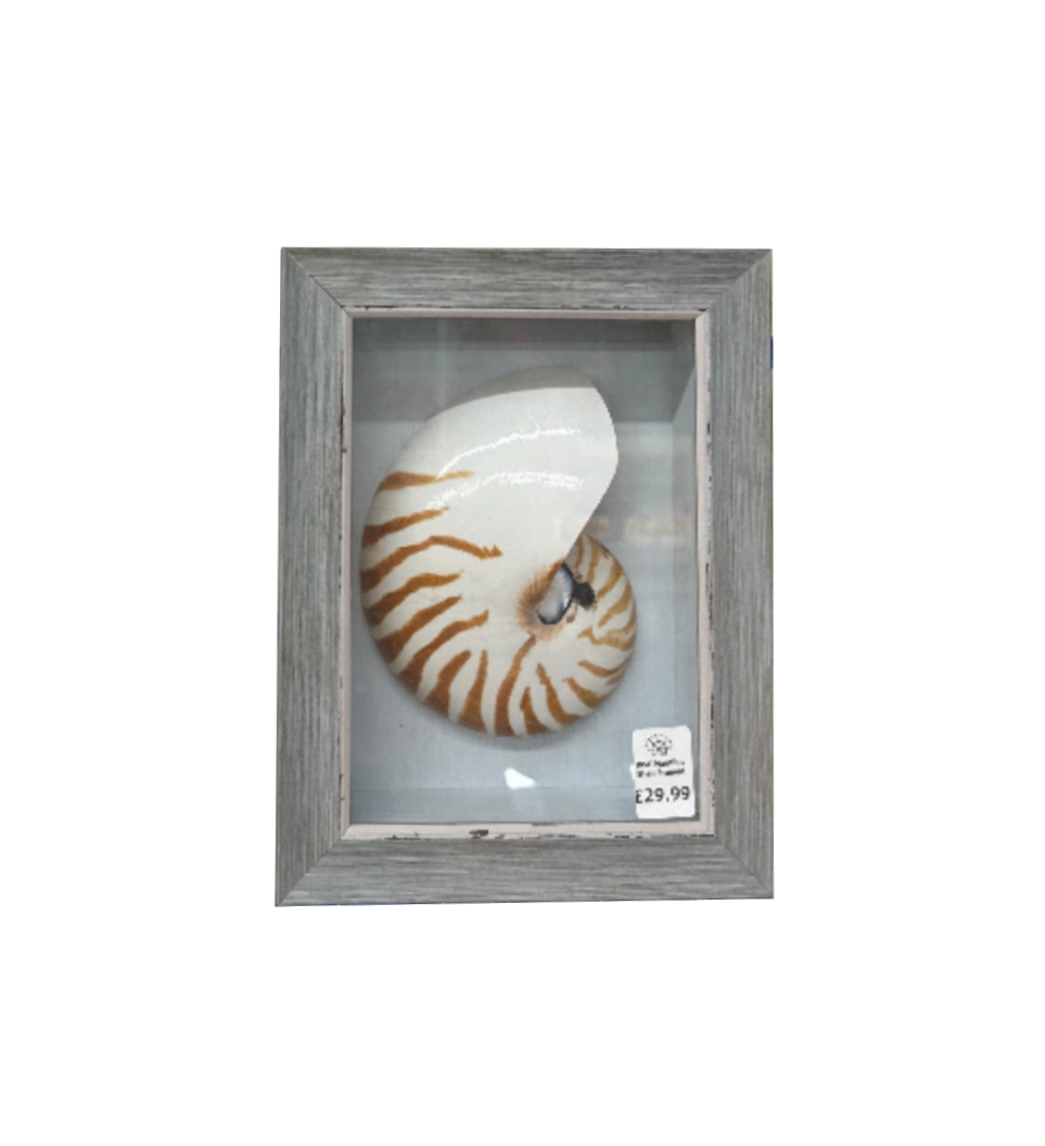 This authentic nautilus half shell is beautifully presented in a 17cm wide by 22cm tall framed box, with a depth of 6cm.