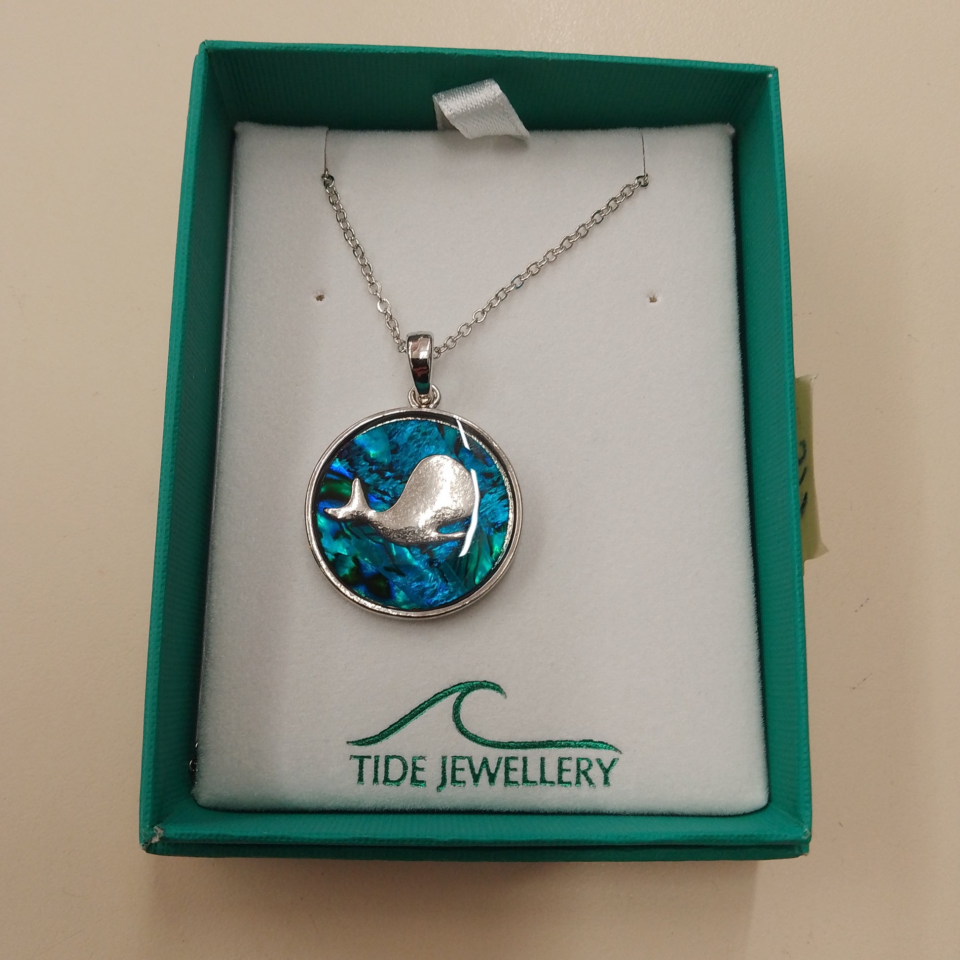 - Blue Paua shell, metal whale & clear epoxy covering to create smooth underwater effect