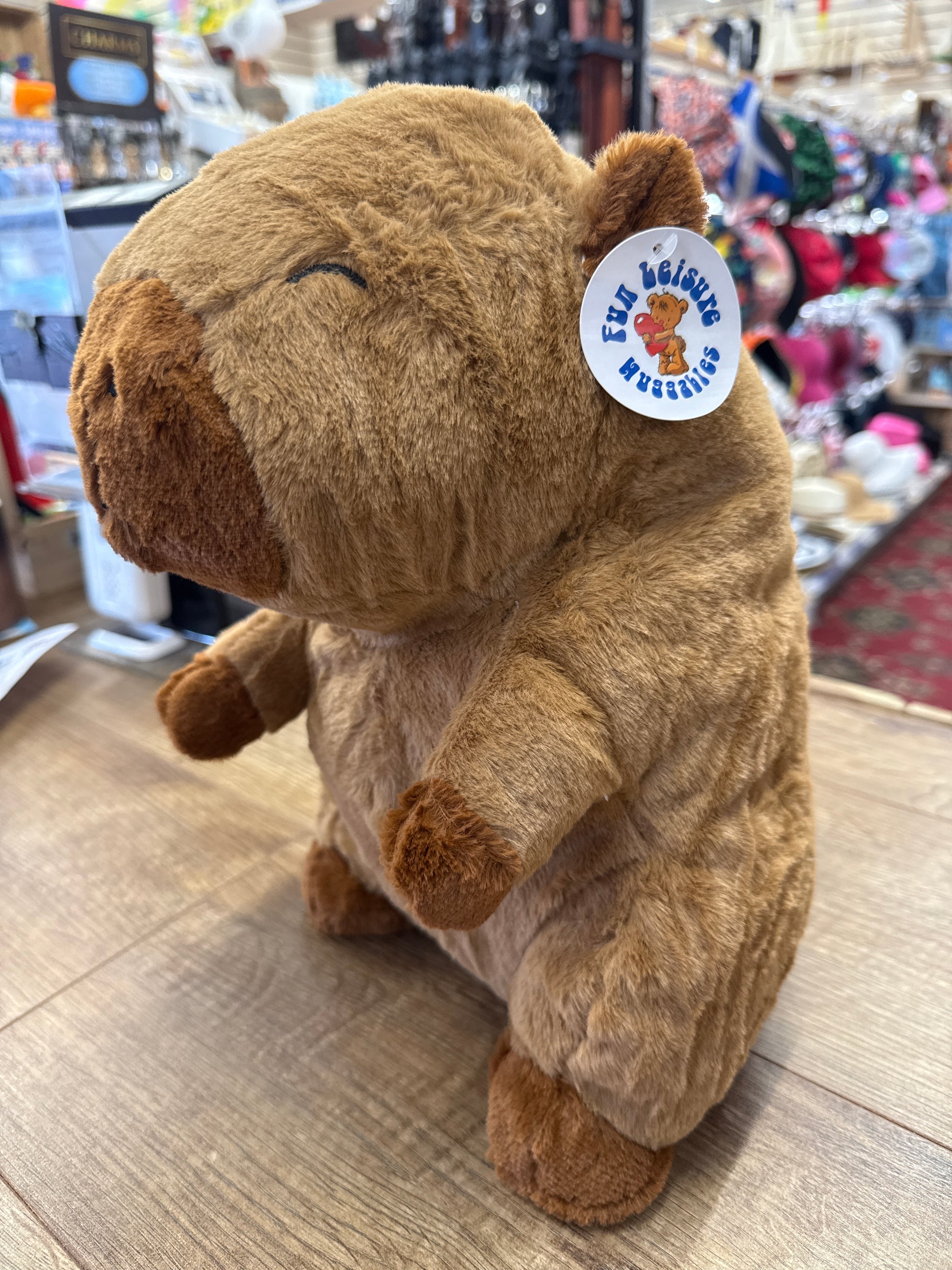 This 30cm tall plush capybara teddy bear combines the charm of a classic teddy with the distinctive features of a capybara. Crafted with expert attention to detail, it offers a soft, durable texture perfect for both display and cuddling. Its unique design makes it a standout addition to any plush collection or a thoughtful gift for enthusiasts of wildlife-inspired toys.