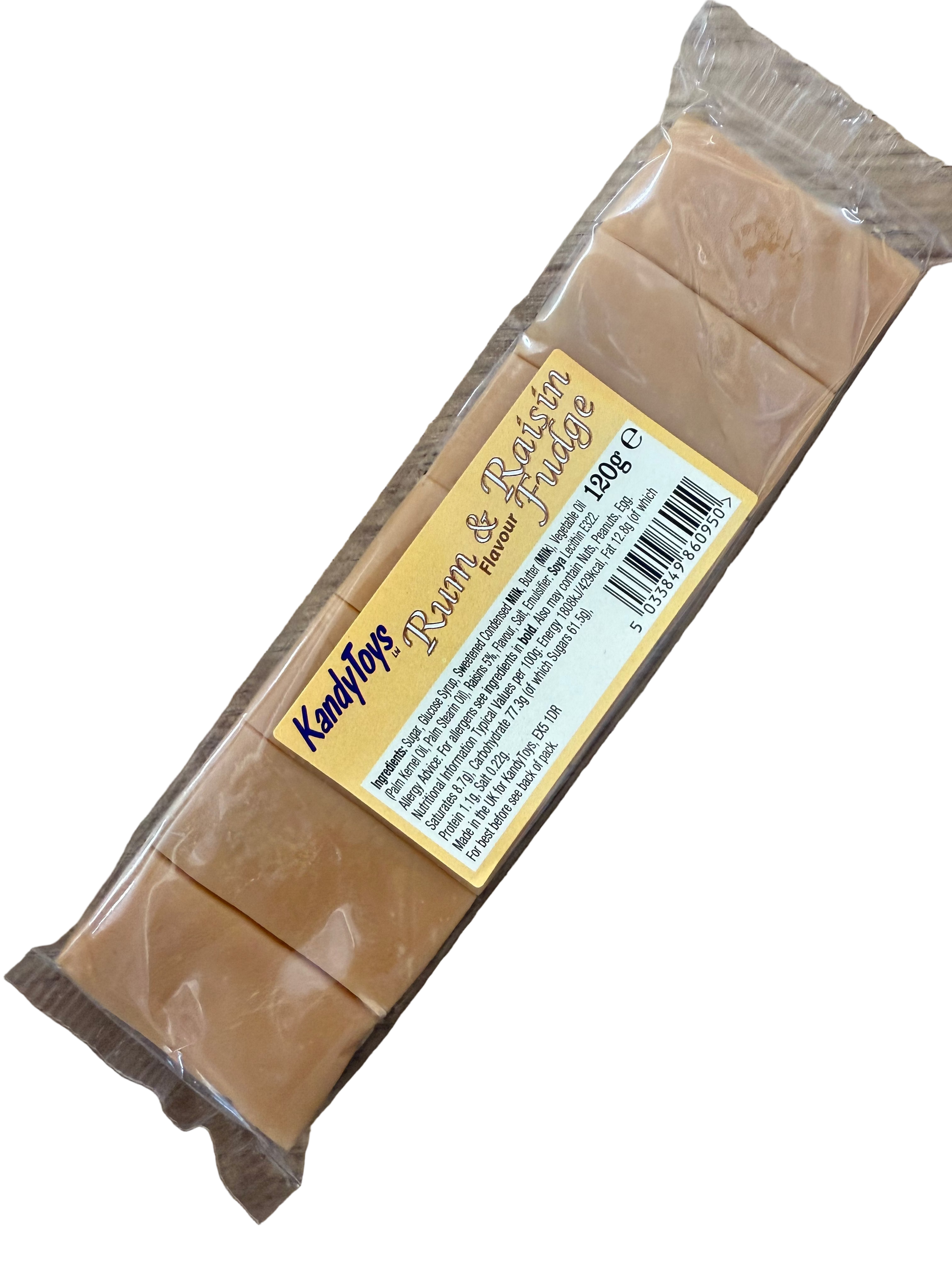 Indulge in our premium Rum & Raisin Flavour Fudge Bar, made with rum flavours and plump raisins. Each 120g bar is perfect for satisfying your sweet tooth.