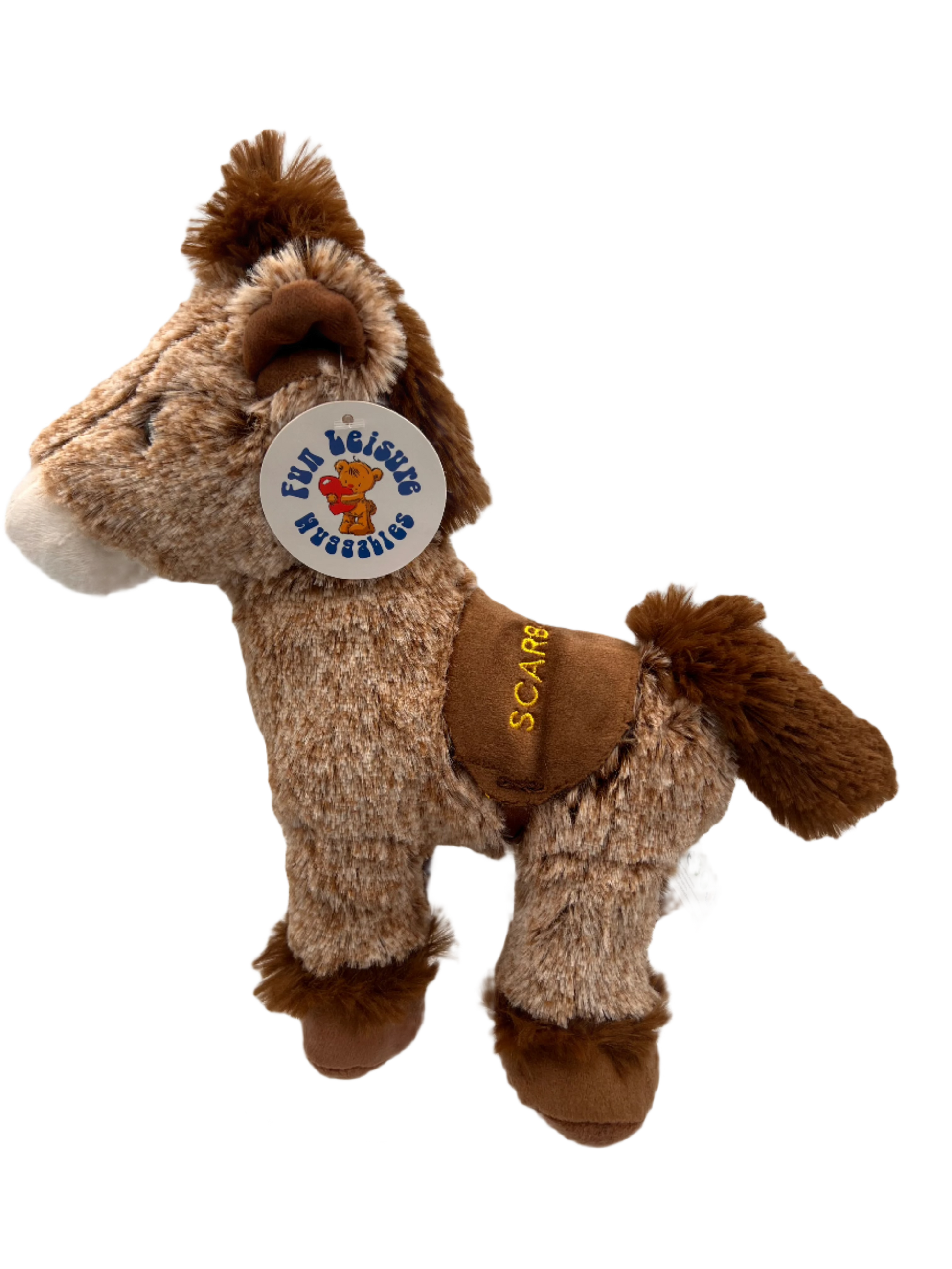 This quirky soft toy donkey comes with a stylish embroidered SCARBOROUGH saddle, perfect for all your adventures.