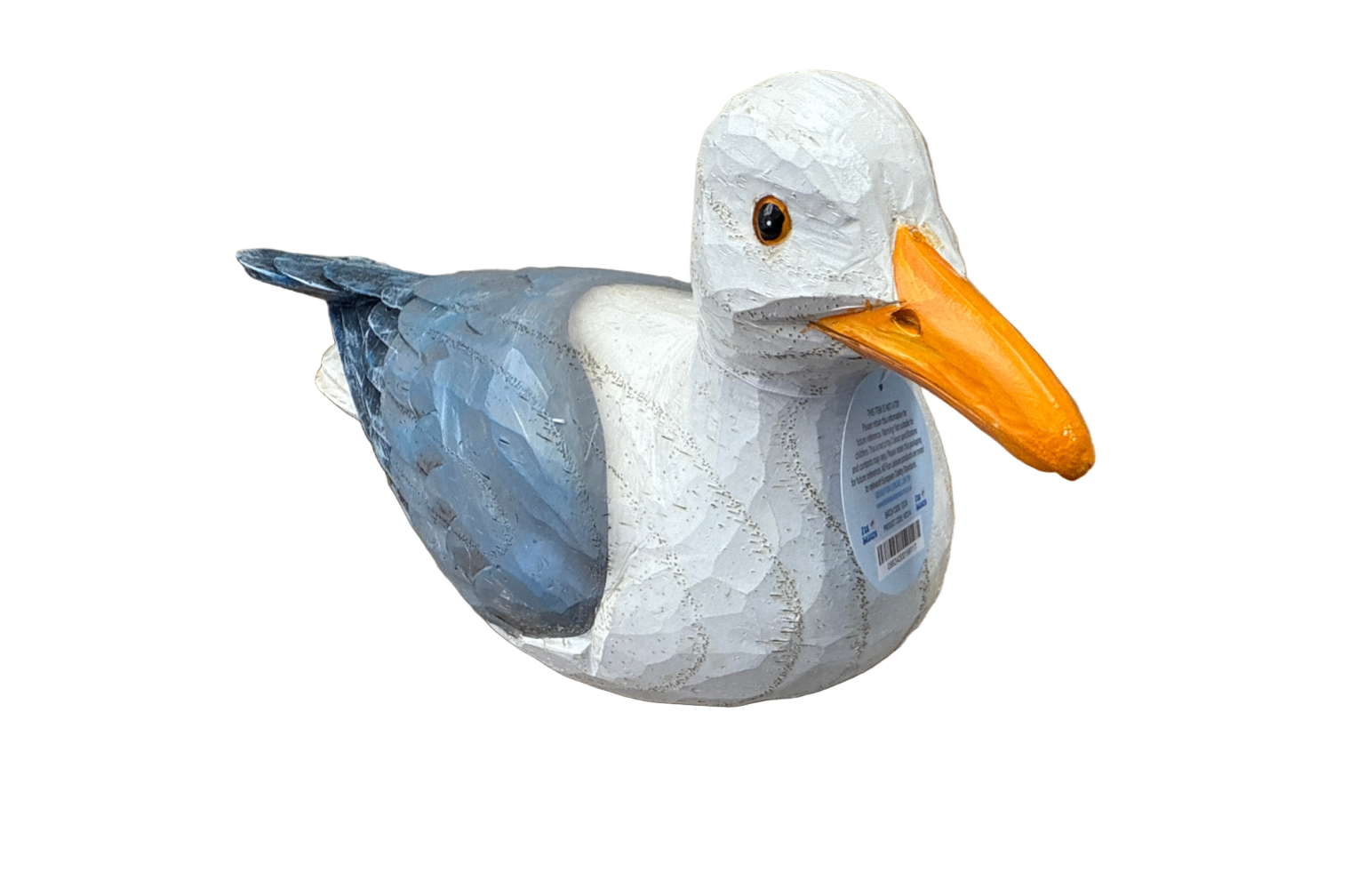 This 30cm long seagull sculpture captures the bird in a natural sitting pose, crafted from durable resin with a realistic wood effect finish.