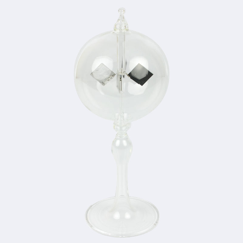 The Crookes Radiometer stands 20cm tall encased in clear glass, showcasing a fascinating scientific principle.