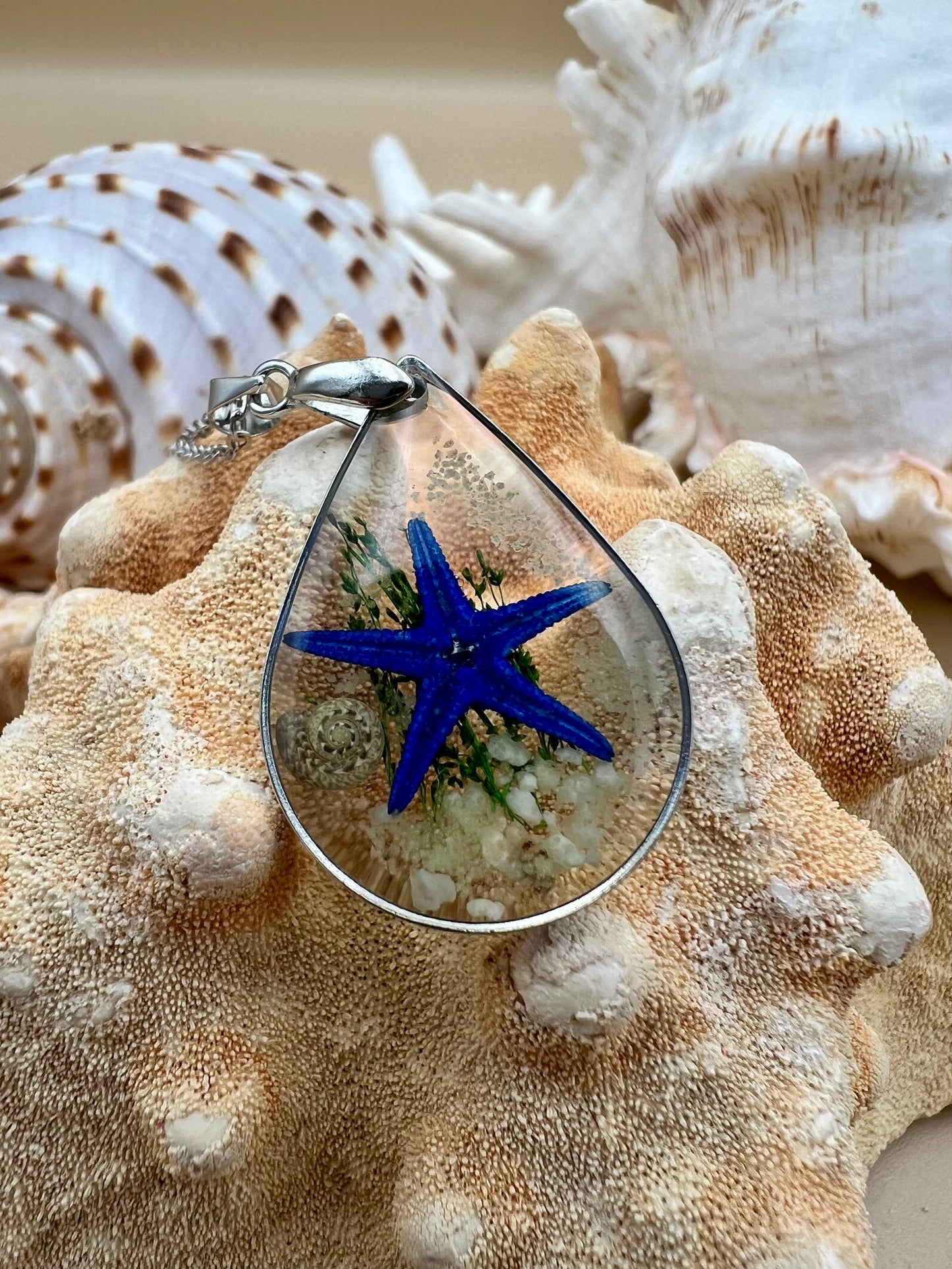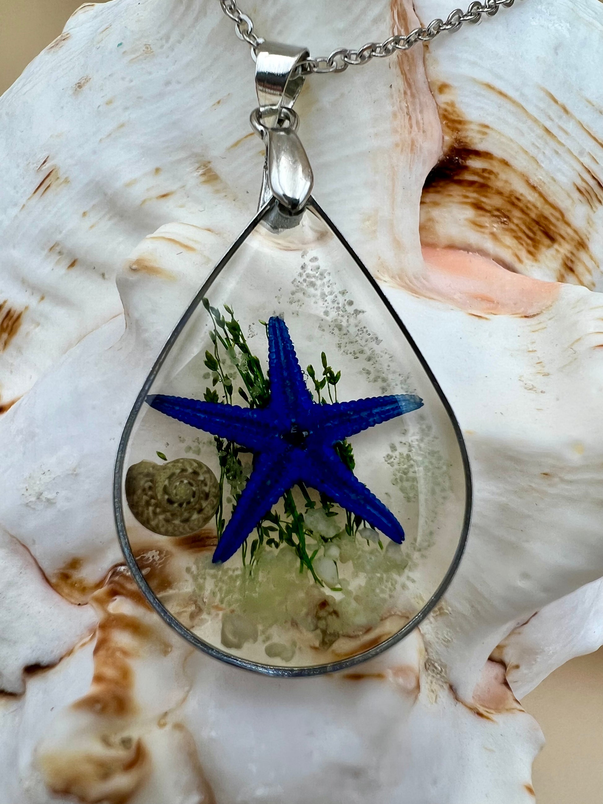 - Tear drop necklace with starfish & sea shell
