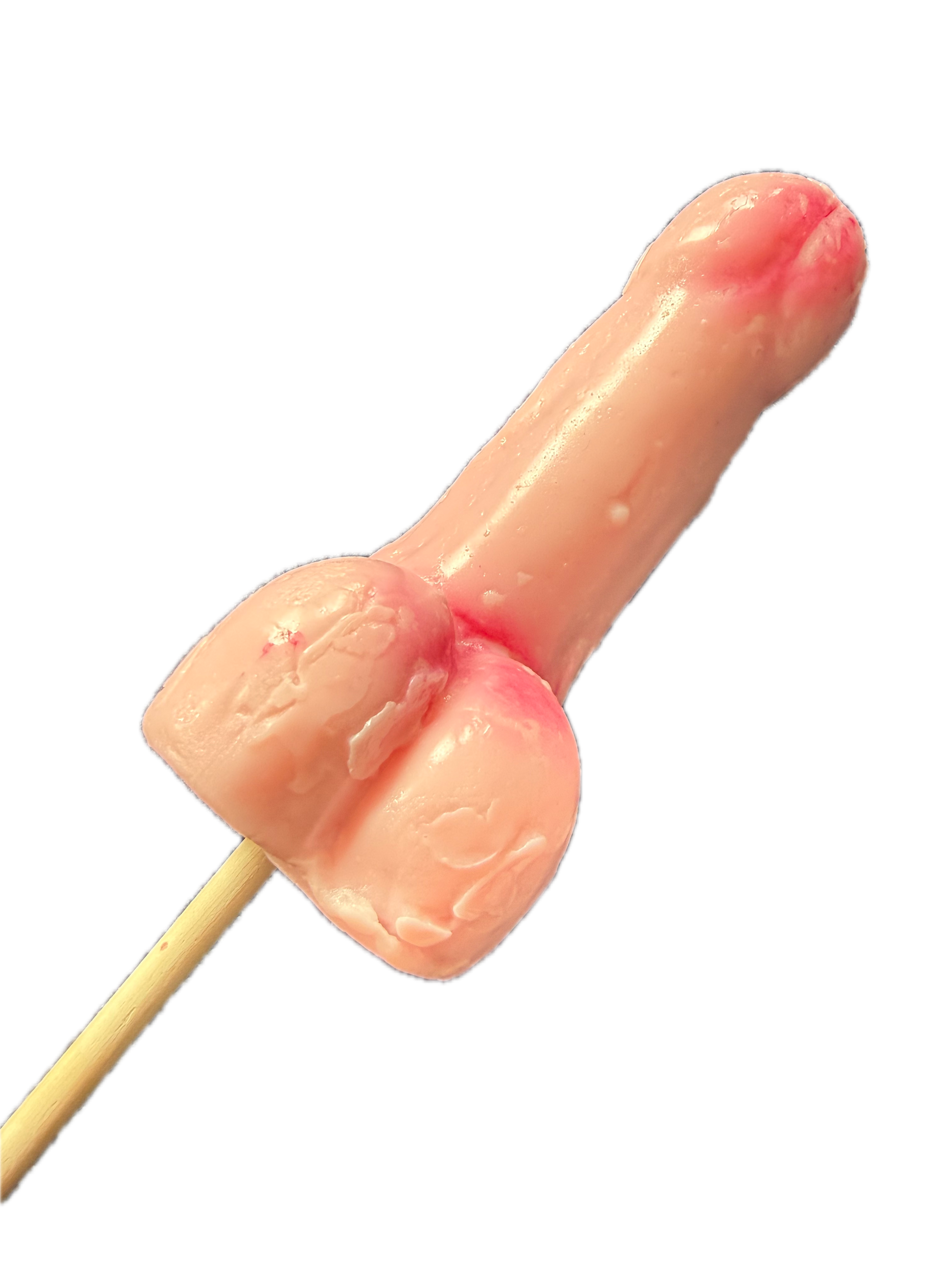 Wobbly Willie is a charming 20cm candy stick featuring a 10cm rock sweet crafted in the shape of a playful penis.